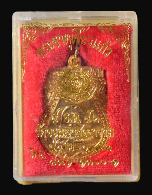 เหรียญเสมากะไหล่ทอง พระธาตุเขี้ยวแก้วหลัง ภปร.ปี2542 วัดอรุณราชวราราม พร้อมกล่อง