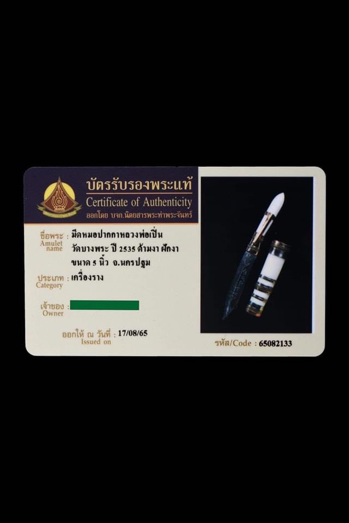 มีดหมอปากกาหลวงพ่อเปิ่น วัดบางพระ ขนา 5 นิ้ว ด้ามงา ฝักงา ปี2535