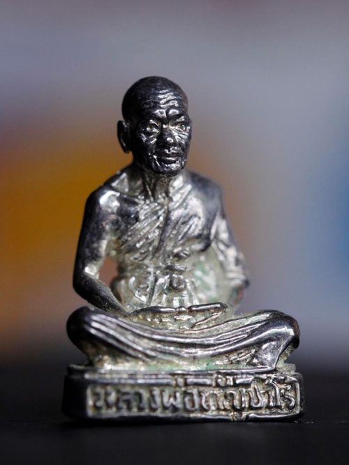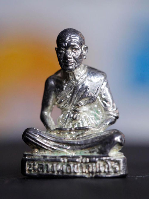 รูปหล่อกริ่ง เนื้อเงิน หลวงพ่อขวัญ ปวโร วัดบ้านไร่ (วัดเทพสิทธิการาม) อ.สามง่าม