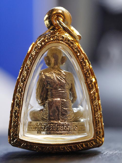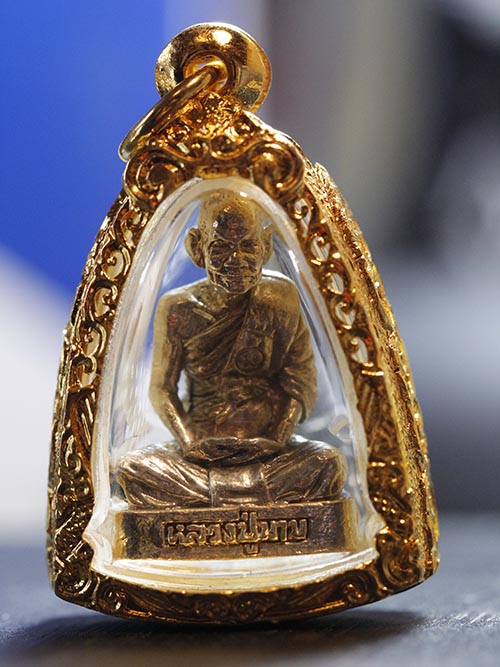รูปหล่อรุ่นแรก เนื้อเงิน หลวงปู่นาม วัดน้อยชมภู่ ไตรมาส 55 เลี่ยมทองไมครอน