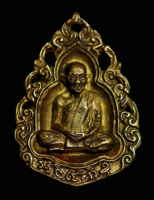 เหรียญหล่อฉลุ เนื้อทองผสม หลวงพ่อขอม วัดไผ่โรงวัว ปี 37