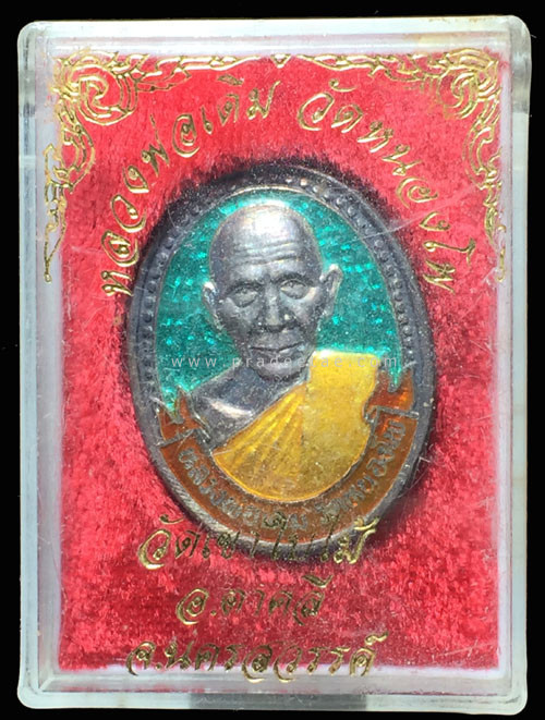 เหรียญหลวงพ่อเดิม วัดหนองโพธิ์ ออกวัดเขาดอกไม้ เนื้อเงินลงยา No.1 (พร้อมเช่า)