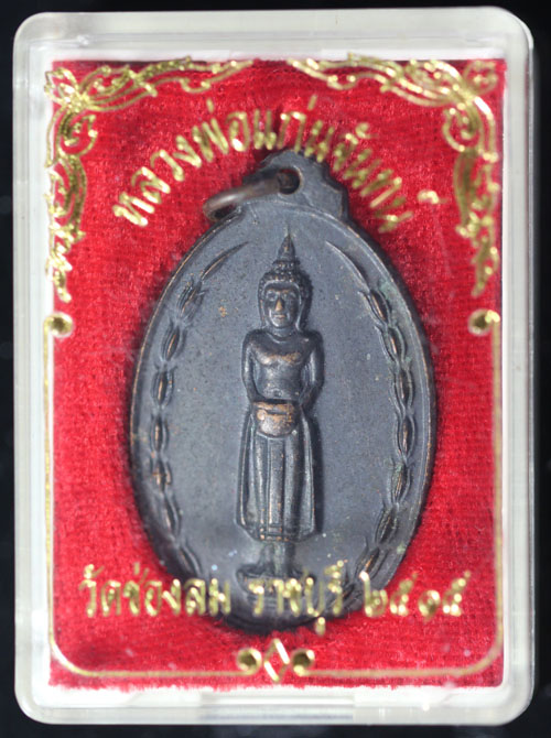 หลวงพ่อแก่นจันทน์ วัดช่องลม ปี 15 เนื้อทองแดงรมดำ พร้อมกล่อง