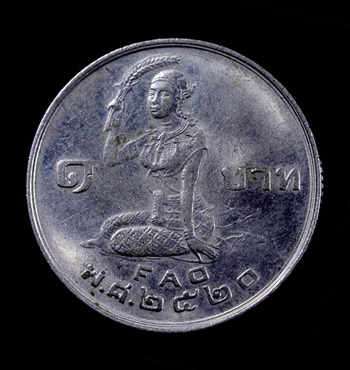 เหรียญกษาปณ์ที่ระลึก 1 บาท FAO โปรยข้าว หายาก ปี 2520 หายาก