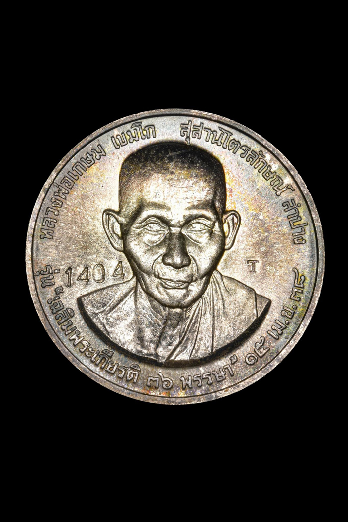 เหรียญหลวงพ่อเกษม เขมโก รุ่นเฉลิมพระเกียรติ 36 พรรษา เนื้อเงิน กล่องเดิม