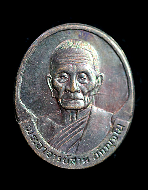 เหรียญอายุ 91 ปี ลป.สาม วัดป่าไตรวิเวก ปี 2533 เนื้อทองแดง