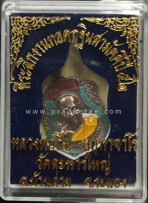 เหรียญเสมาเล็ก ลพ.สิน วัดละหารใหญ่ เนื้อเงินลงยา พร้อมกล่อง
