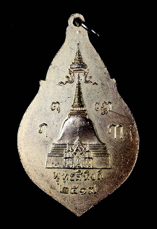 ...เหรียญ พระพุทธสิหิงค์ พิมพ์ข้างดอกบัว วัดพระปฐมเจดีย์ เนื้อทองแดง หลังองค์พระ