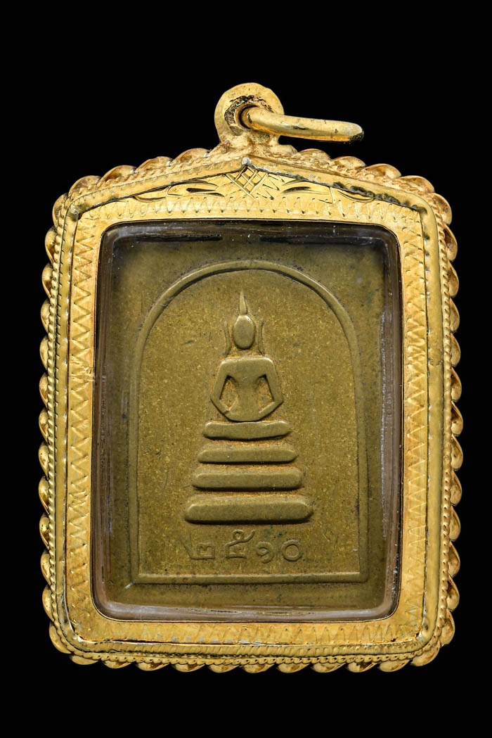 เหรียญ 4 เหลี่ยมหลังพระพุทธ ลพ.มุ่ย วัดดอนไร่ ปี 2510 เลี่ยมเงินชุบทอง