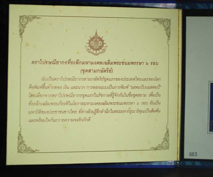 แสตมป์ทองคำ นาค เงิน ที่ระลึก เฉลิมพระชนมพรรษา ในหลวง ร.9 ครบ 6 รอบ